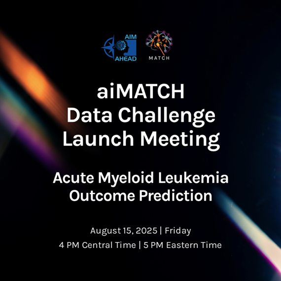 Advance progress in Acute Myeloid Leukemia (AML) research through the aiMATCH Data Challenge! All AIM-AHEAD researchers, trainees, and awardees are invited to predict patient outcomes using novel algorithms and a comprehensive multimodal dataset containing clinical, proteomic, and cytogenetic data. This unique competition offers the opportunity to interact with the aiMATCH Chatbot for dataset exploration, approach development, and education about AML.
