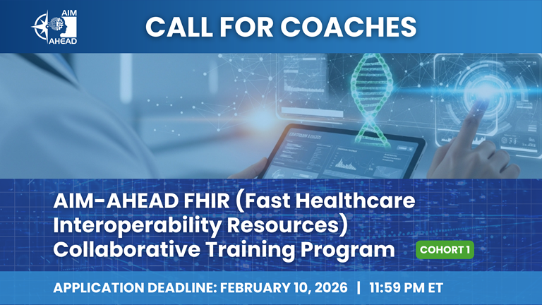 AIM-AHEAD is recruiting coaches for the 2025-2026 AIM-AHEAD FHIR (Fast Healthcare Interoperability Resources) Collaborative Training Program.